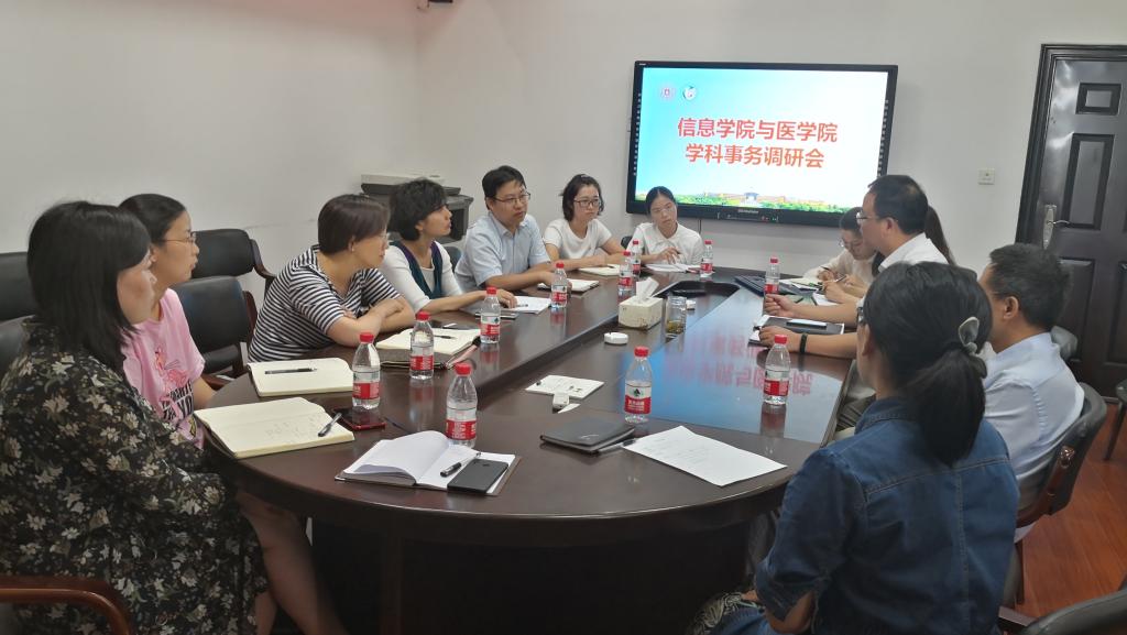9月19日,成人短视频 医学院院长刘昱、副院长赵基源等调研团一行7人来成人短视频 进行学科、科研、研究生等工作的调研,学院院长夏银水、党委书记骆巧凤、副院长王伦耀等接待来访并举行座谈交流。 座谈中,双方就“学科方面的建设和举措”、“研究生招生工作”、“学位点申报过程中存在的问题”、“研究生奖学金评定政策”等问题进行了深入的交流和探讨,相互介绍了工作经验和优势特色。学院学科办、学工办等相关人员参与了交流。