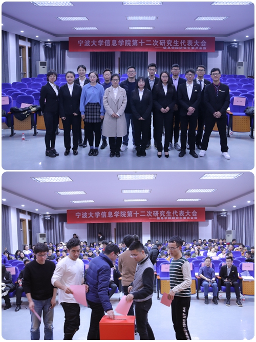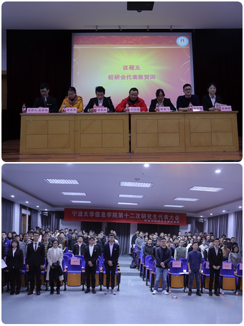 第十二次研究生代表大会在曹光彪信息楼5楼报告厅成功举行。学院副院长王伦耀老师、党委副书记屠春飞老师、学工办主任孙文静老师,E-青年工作室主任黄青年老师、十一届研会主席团李娜娜同学、各兄弟学院研会代表和成人短视频