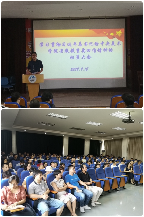 党委组织学习贯彻习近平总书记给中央美术学院老教授重要回信精神的党员学习大会,学院党委委员、教职工党员、学生党员180余人参加了学习会。