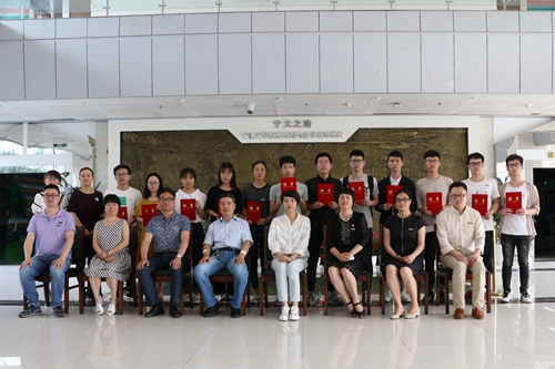 校发展联络处处长助理张海华老师宣读了第二届“海天助学金”获得者名单,全体与会领导嘉宾共同为12名获资助学生颁发证书。成人短视频