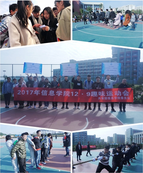 团委主办的一二.九趣味运动会顺利开展。本次一二•九趣味运动会以“不忘初心,砥砺前行”为主题,紧紧围绕团员青年践行十九大的初衷,开展中共十九大知多少(问答环节),传递中国梦(传递洋葱圈),夹着梦想前行(夹球跑),跳跃历史的鸿沟(跳大绳),不忘初心跟党走(绑腿跑),红线落谁家?(拔河比赛)六项趣味运动项目。