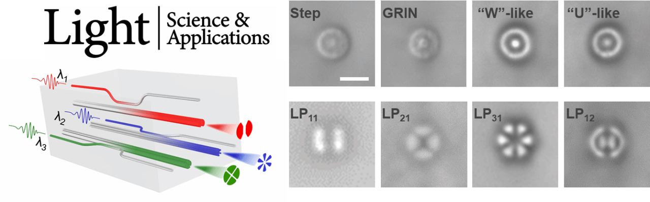 近日,成人短视频 Light+X团队钟理京博士和浙江大学邱建荣教授等在3D光子芯片的飞秒激光制造领域取得系列重要进展。论文以第一作者/通讯作者身份发表分别在光学领域顶尖期刊 Light: Science & Applications和材料学领域顶尖期刊 Advanced Materials上。飞秒激光直写技术是一种同时具备三维(3D)加工能力和纳米精度的快速制造技术,被广泛应用于精密工业加工和前沿科学研究。然而,无论是基于传统的平面光刻技术还是当前的飞秒激光直写技术,对波导折射率分布的精细控制仍然遥不可及。针对这一长期存在的光学工程难题,钟理京等在飞秒激光制造渐变折射率和任意可变截面的3D光子光路上取得重要突破:研究团队通过开发一种精细的飞秒激光直写方法,提供了一种在3D集成光子光路中实现超宽带、低色散耦合的有效途径,与传统的平面光波导器件相比,在片上传输和操纵强非线性激光脉冲方面展现出压倒性的优势,使其成为构建下一代复合集成3D光子光路的有力工具。该研究成果以“Precise mode control of laser-written waveguides for broadband, low-dispersion 3D integrated optics”为题,于2024年6月4日在线发表在光学领域顶尖期刊 Light: Science & Applications上。钟理京博士为第一通讯作者和共同第一作者,邱建荣教授为最后通讯作者。此外,Light+X团队还与之江实验室、华南理工大学和意大利比萨大学等研究人员合作,采用飞秒激光直写技术,在包括YAG、LuAG、LiNbO3等稀土掺杂或不掺杂的多种单晶晶体中,开发出一系列低损耗、可变截面的无源和有源光波导集成器件。该研究成果以“3D Laser Writing of Low-Loss Cross-Section-Variable Type-I Optical Waveguide Passive/Active Integrated Devices in Single Crystals”为题,于2024年5月8日在线发表在材料学领域顶尖期刊 Advanced Materials上。钟理京博士为共同通讯作者,邱建荣教授为最后通讯作者。