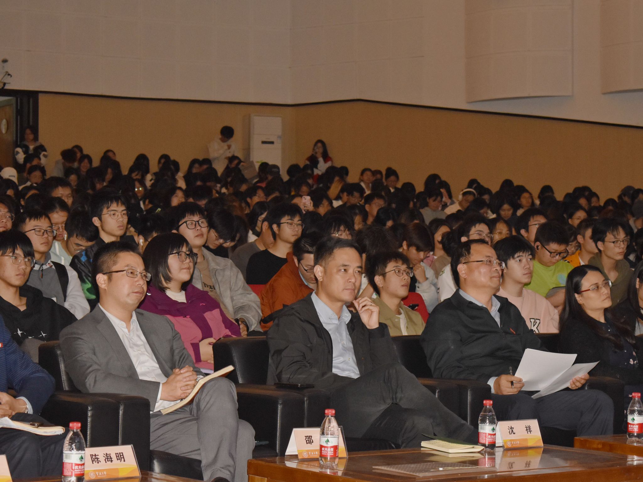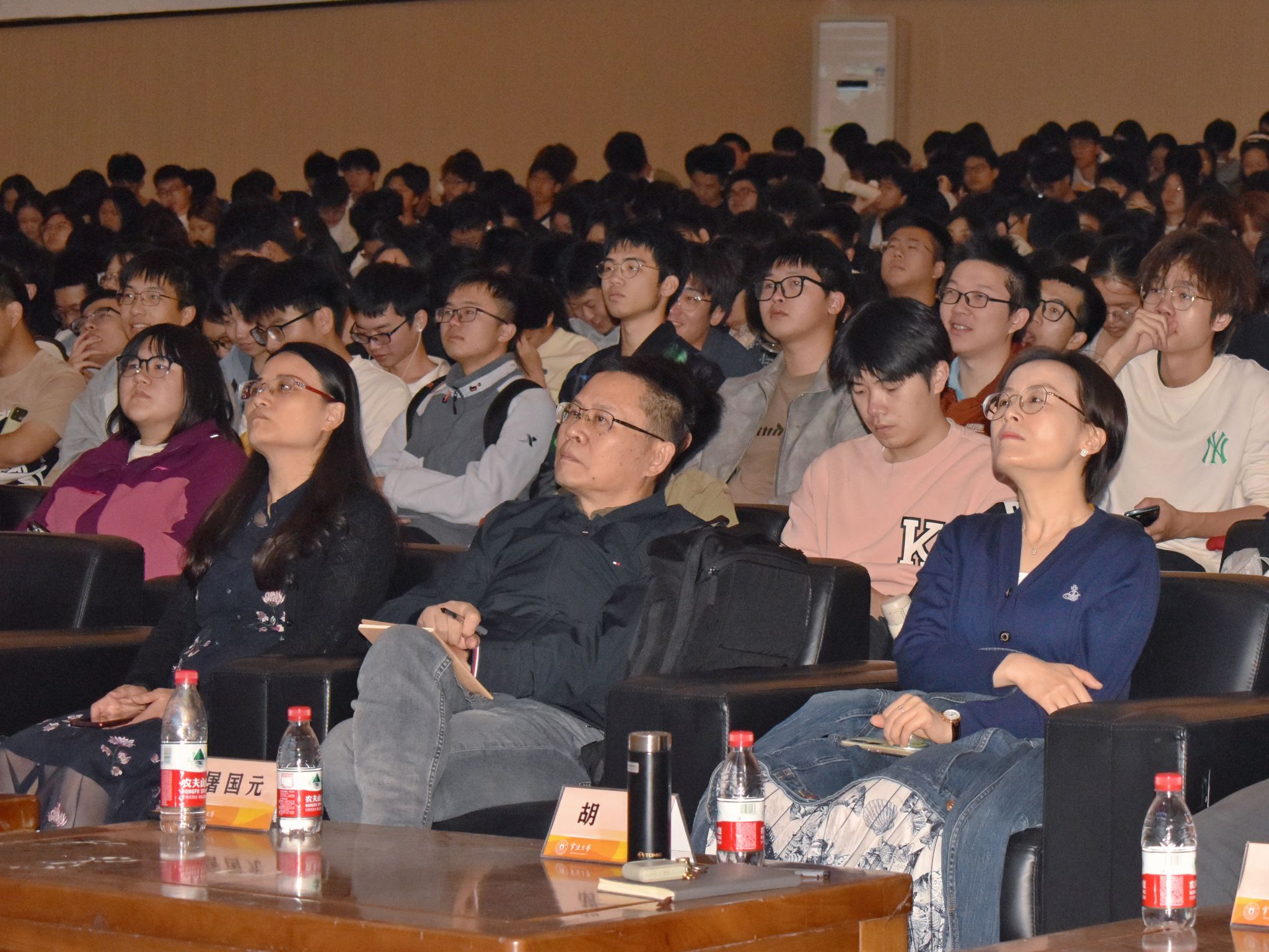 、外国语学院师生上题为“中国高科技发展面临的机遇和挑战”的形势政策课。