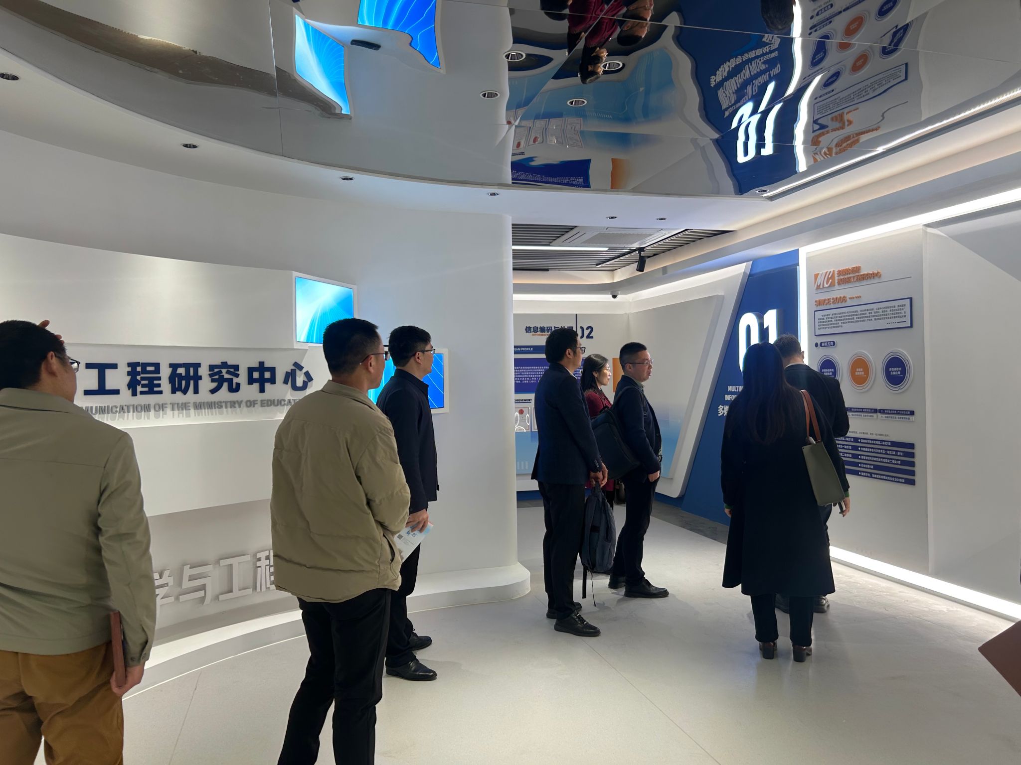 会后,莫晨宇一行参观了学院的教育部多媒体通信中心和创新创业长廊的建设情况。