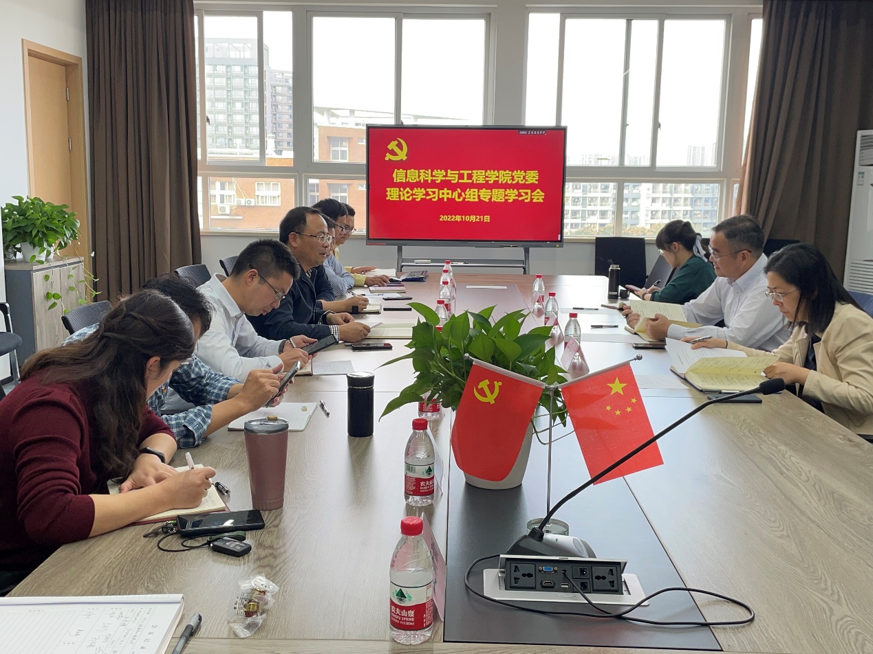 党委理论学习中心组在杨咏曼楼606开展专题学习,深入学习讨论习近平总书记在党的二十大上的报告。会议由院党委书记王伦耀主持,学院理论中心组所有成员参加。此次学习邀请校党委委员、副校长姚菊明进行巡听,学工部部长胡铭、组织部相关人员参加学习研讨。