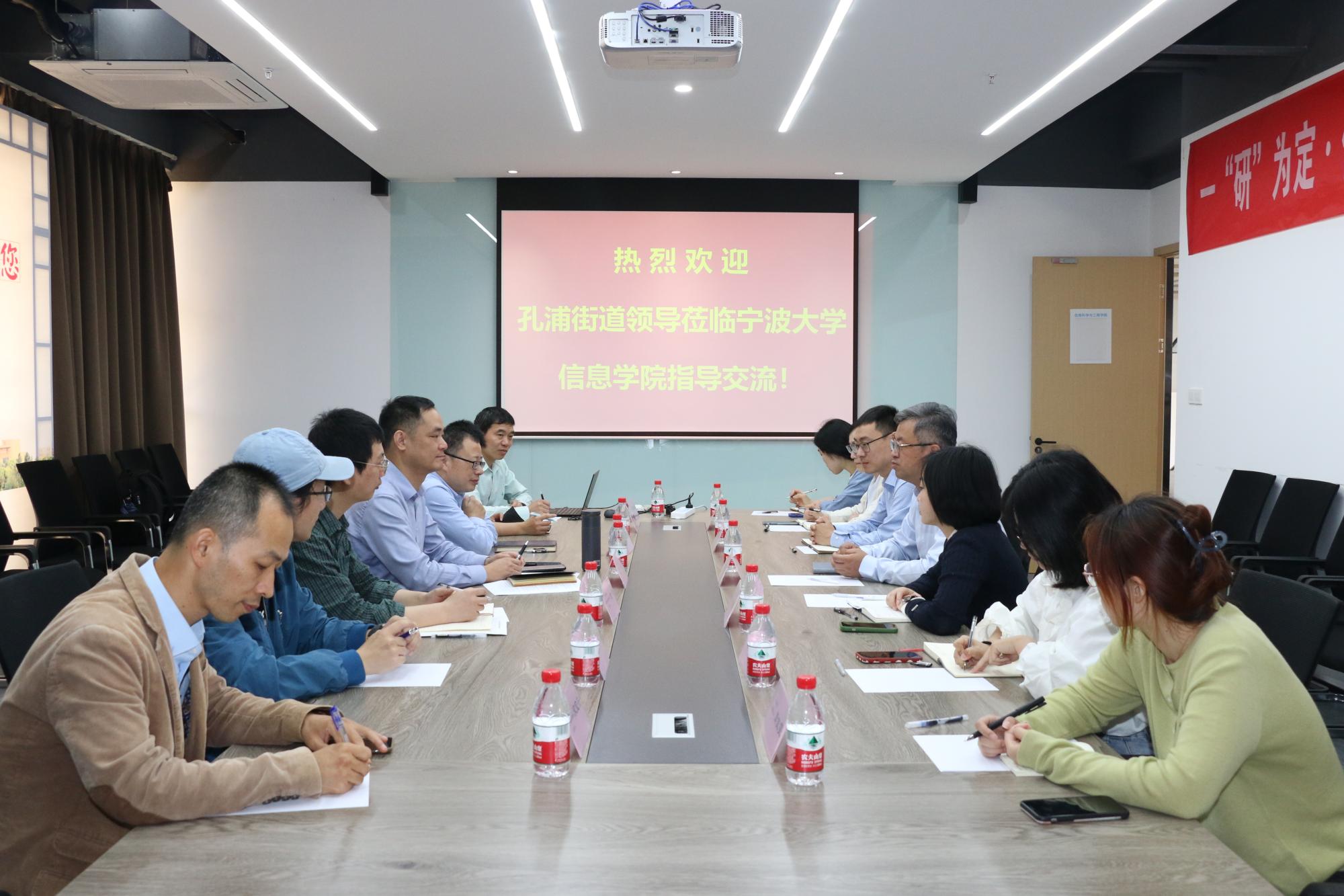 沈祥对孔浦街道领导的到来表示热烈的欢迎,并向来宾详细介绍学院的发展情况以及浙江省集成电路产业学院的建设和需求情况。通过采用人才引进和团队建设等方式,探索集成电路产业学院入驻孔浦街道的新思路,提出推进产业学院与地方深入、实质性地合作的系列办法。