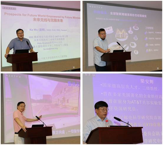 专家们在作报告中(左上:吴柯 右上:宋粱 左下:李万林 右下:粱安辉)