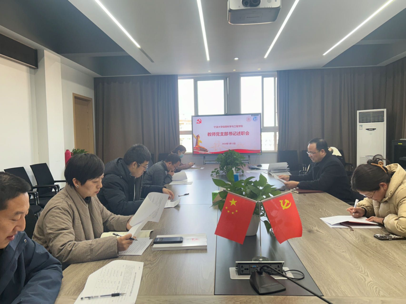 1月12日下午,成人短视频 教工党支部书记述职评议会在学院606会议室举行。学院党委书记、全体教工党支部书记参会,会议采取述职、测评、总结点评的方式进行。6名党支部书记围绕推进学习习近平新时代中国特色社会主义思想主题教育情况、落实“三会一课”、推进党建和业务“双融双促”的情况等三方面分别做了汇报,既全面总结了成绩,凝练了支部建设工作,又认真查摆了工作中存在的问题,提出下一步整改措施,并明确2024年度党建工作的思路和举措,彰显了主责主抓的担当作为意识。王伦耀对各支部过去一年里在教学科研、学科建设、党的建设等方面发挥的战斗堡垒作用给予肯定,对各支部工作特色和存在问题一一做了点评,并对各支部下一年的工作提出了三点希望和要求。一要持续加强理论学习,增强学习的主动性,引导广大党员把理论学习与教学科研等业务工作结合起来,用党的创新理论指导实践,进一步推进党建与业务双融双促;二要认真贯彻“党建强院”行动,聚焦基层支部工作板块,提升党建工作的规范性,严格落实“三会一课”要求,进一步夯实党建基础工作;三要持续推进党建“双创”工作的培育创建,进一步深化“党建+”党建特色工作及“E”系列学院文化品牌建设工作,进一步凝练党建特色品牌,加强宣传,争取在党建“双创”项目上实现新的突破。