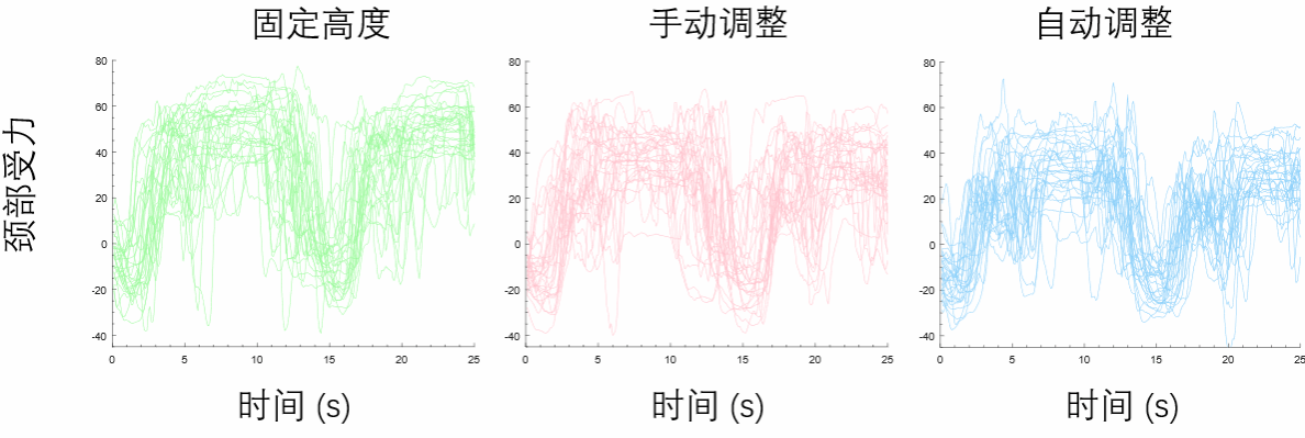 图1 三种桌面高度调整方式与颈部受力结果
