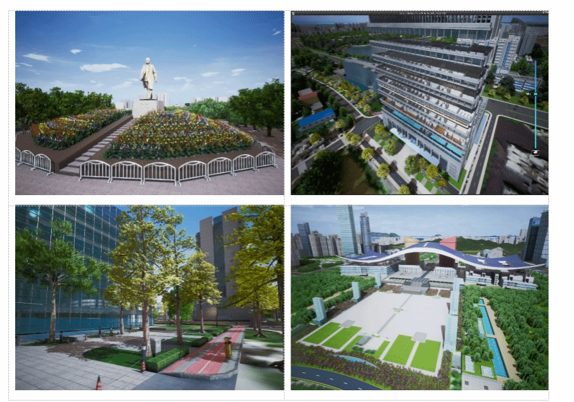 实现了城市范围多源三维数据(包括BIM、倾斜摄影等、DEM+DOM结合产生的模型等)集成,在游戏引擎UE4中实现遵循3D Tiles标准的城市范围建筑物动态加载调度(未实现遮挡剔除),实现以莲花山公园片区代表的小范围的近地面高逼真虚拟环境的渲染。