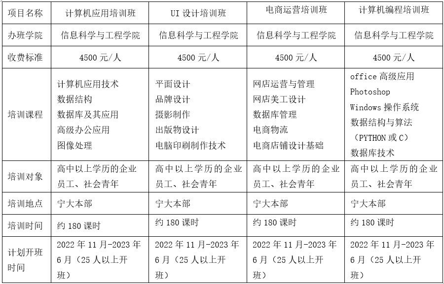 通过技能培训班的培训学习,使学员能较好地了解企业管理的内涵、相关岗位的技能和素养要求;通过培训使学员较好地掌握相关行业的专业技能,提升综合素养,满足学员对自身能力的提升需求,增加职场竞争力。