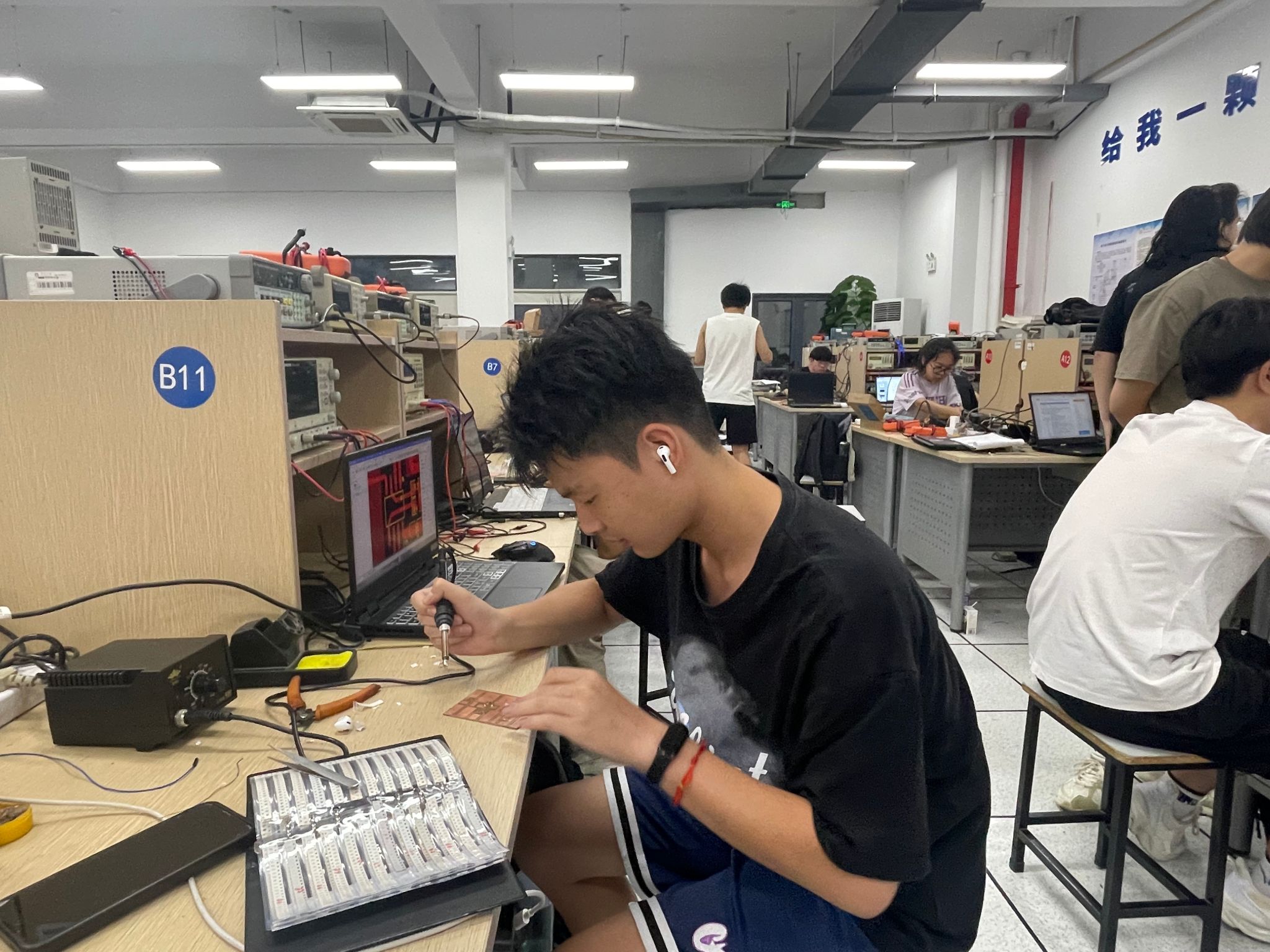 本届省赛由浙江省大学生科技竞赛委员会主办,杭州电子科技大学、杭州科技职业技术学院承办,竞赛采用“统一命题、分布答题、集中测评”的方式进行,由7月29至8月1日的比赛答题和8月5至7日的作品测评两个阶段组成。竞赛以电子电路(含模拟和数字电路)应用设计为主要内容,涉及模-数混合电路、单片机、可编程器件、EDA软件工具和PC 机(主要用于开发)的应用。包括“理论设计”和“实际制作与调试”两部分。赛事吸引了来自全省包括浙江大学、杭州电子科技大学、浙江工业大学等62所院校的969支参赛队伍,我校共25个队伍参赛。这25个参赛队员们经过专业课程学习和一个月的选拔培训,根据培训项目的完成情况和理论测试成绩选拔进入,并于7月3日至7月27日在北区忻元甫楼的大学生电子设计创新基地中参加暑期强化训练,学生以实验室为家,冒着酷暑日夜奋战、顽强拼搏,培训气氛热烈紧张、秩序井然,最后经过4天3夜的比赛答题和严格测评,获得佳绩,本次大赛充分展示了成人短视频