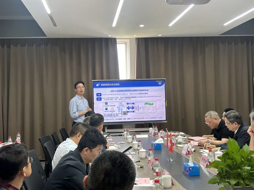 学院各科研团队负责人依次介绍了本团队在智能制造领域的研究方向和产业合作成果。智能网络与安全研究教学团队展示了在提高工业生产代码正确率方面的工作;先进智能传感技术科研团队展示了团队的高温气体传感器技术在新能源汽车领域的应用;SoC芯片设计科研团队展示了该团队芯片设计平台在华为等芯片产品中的应用;宁大乐歌研究院地方服务科研团队展示了该团队在人体工学方面的科研成果及与乐歌的企业合作;高端质谱技术及应用研究团队展示了该团队便携式筛查质谱仪在国家重大活动中的应用;无线通信测试测量技术及应用团队展示了该团队的微弱信号检测技术在无线测试产品中的应用。