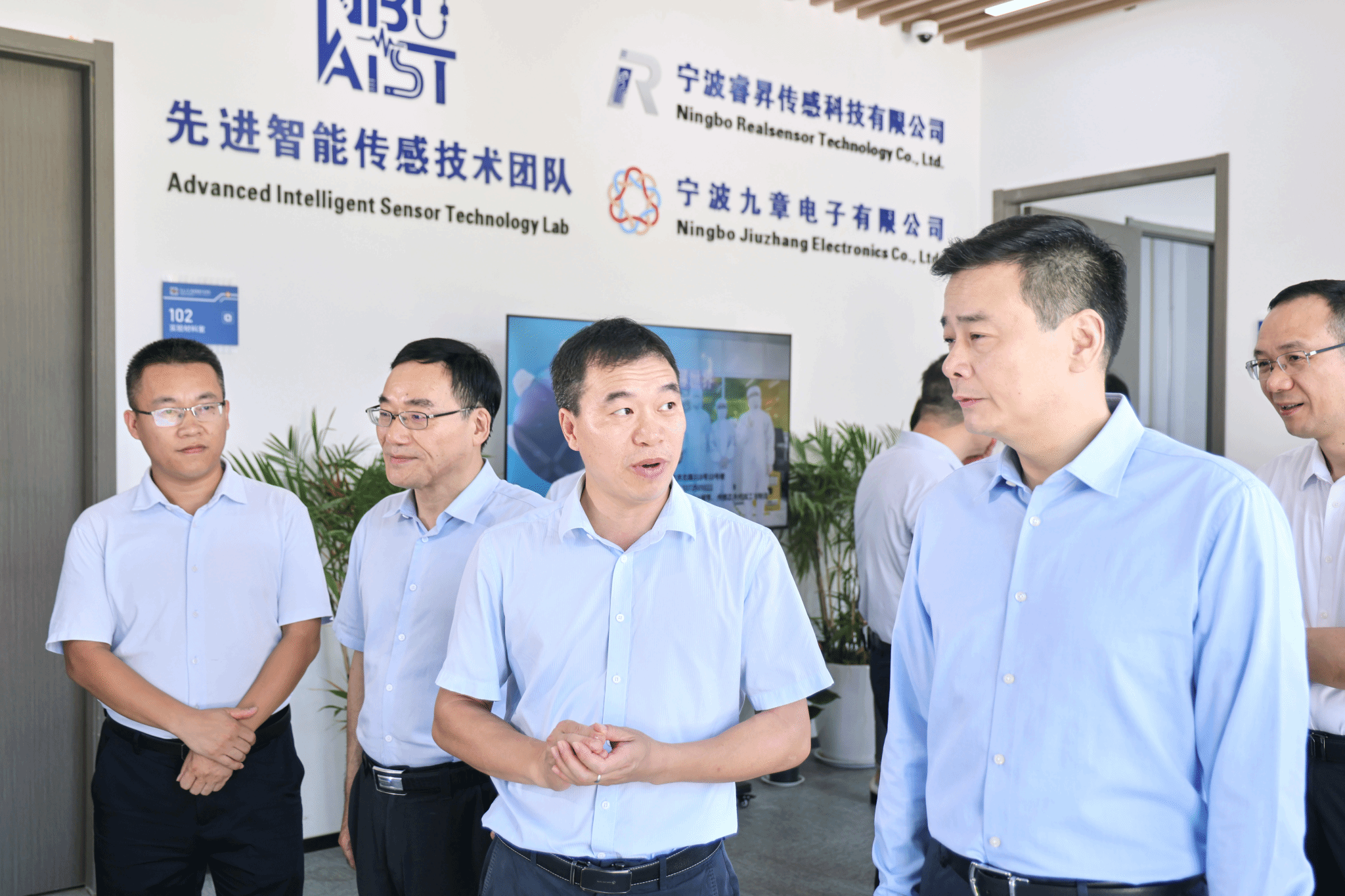 先进智能传感技术团队成果汇报。该团队负责人金庆辉教授重点介绍了团队在机器人六维力传感器技术、新能源车动力电池状态传感技术等方面的技术成果以及孵化企业宁波睿昇传感科技有限公司、宁波九章电子有限公司的产品研发情况。汤飞帆认真询问技术转化细节,对团队将科研成果快速落地的实践表示赞赏,并殷切希望团队持续深耕核心技术,为宁波市绿色制造和智慧节能产业升级贡献更大力量。